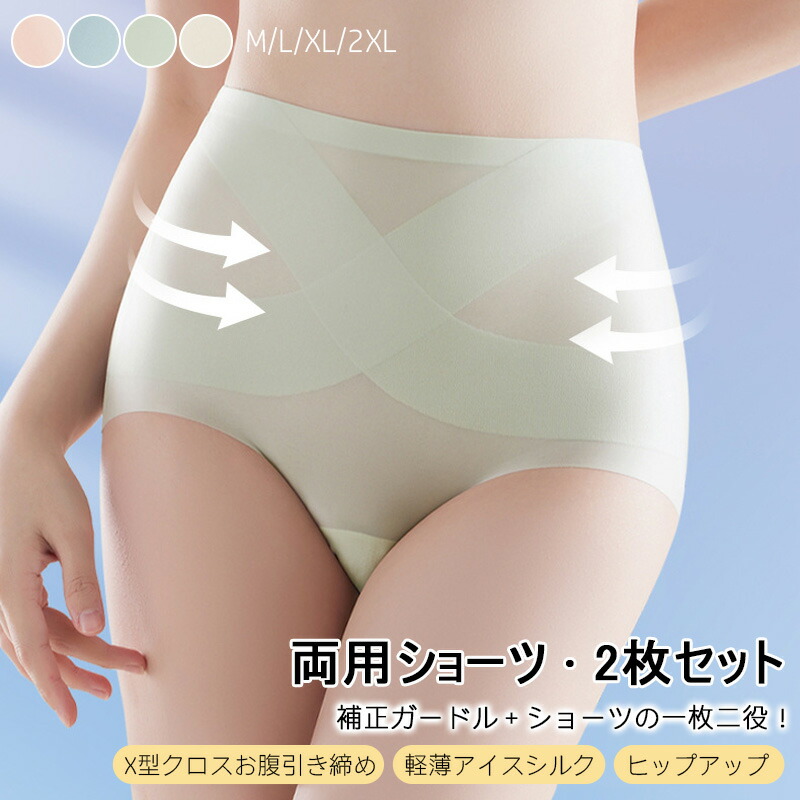ショーツ 通気性 引き締め シームレス 補正下着 骨盤 ヒップアップ ハイウエスト 夏用 薄手 クロス加圧 お腹 2枚セット ぽっこりお腹 ボディシェイパー コルセット 冷感 産後 矯正ベルト