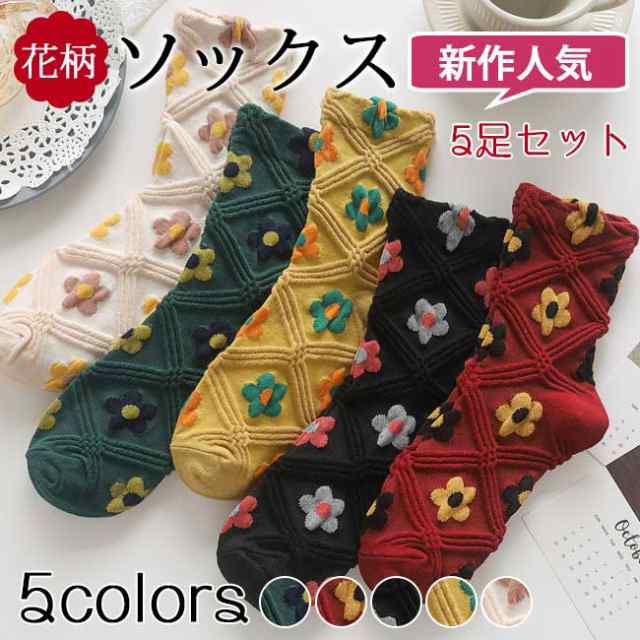 靴下 レディース ソックス【5足セット】花柄 ルーズソックス