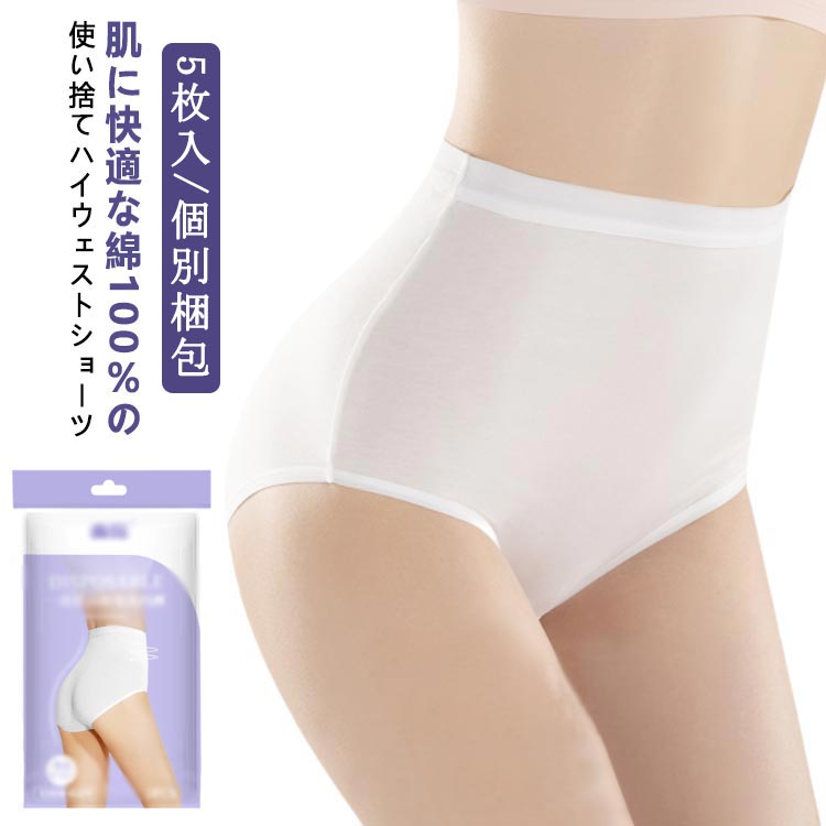 5枚入 抗菌 旅行 女性用 使い捨て インナー ショーツ 下着 パンツ 個別包装 コットン 綿 100 消耗品 使い捨てパンツ 入院 女性用パンツ ハイウェスト 生理 綿100% 施術用 衛生 出産用