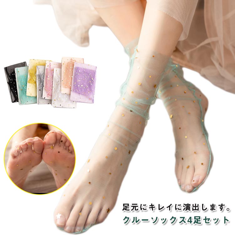 4足セット 靴下 透け感 シースルーソックス きれいめ 可愛い 薄手 パーティー