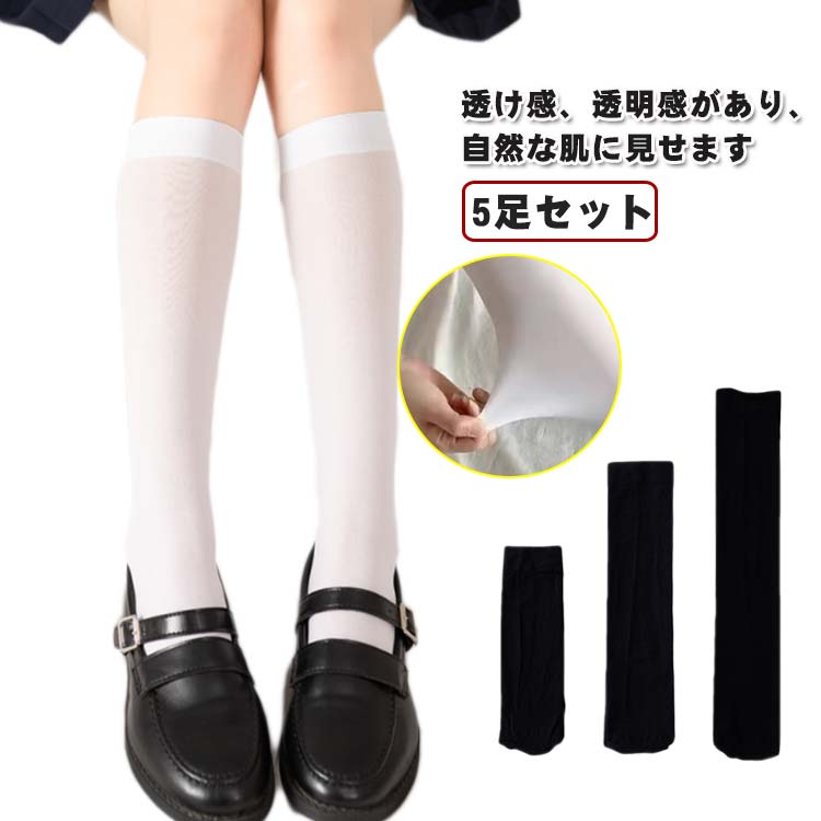 薄手 ひざ下 ショートストッキング ニーハイソックス 黒 白 5足セット ロリータ シースルー ソックス 透け感 美脚 靴下 レディース シアーハイソックス 靴 スクー 紫外線対策