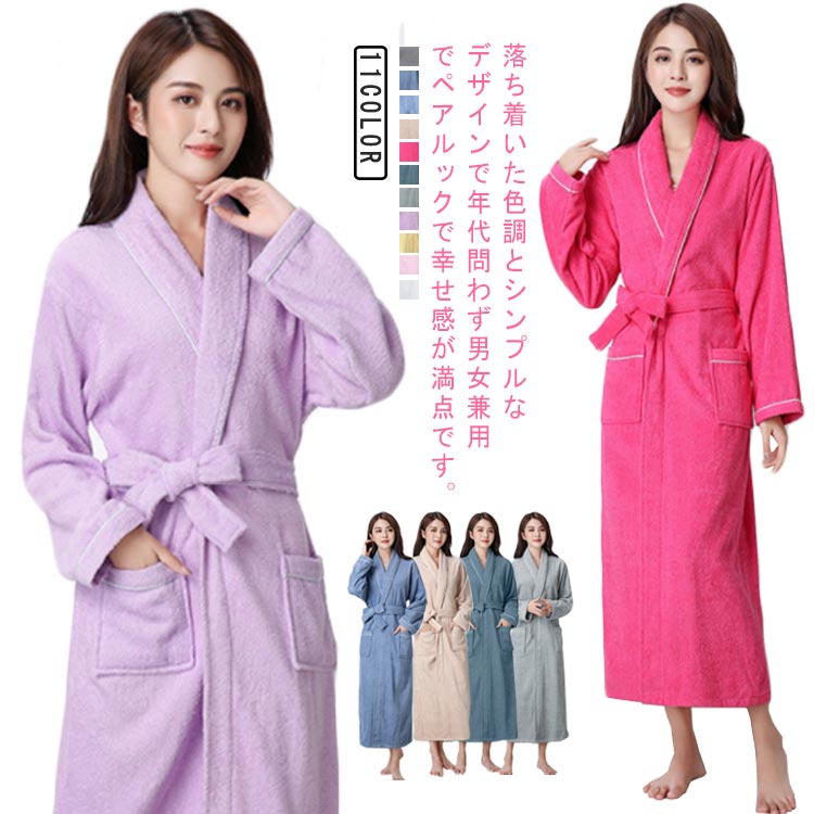 バスローブ メンズ 軽量 レディース 吸水 速乾 部屋着 通気 お風呂上り バスタオル ガウン 長袖 パジャマ ルームフェア タオル地 男女兼用 綿100% ホテル ロング おしゃれ 人気 無 可愛い