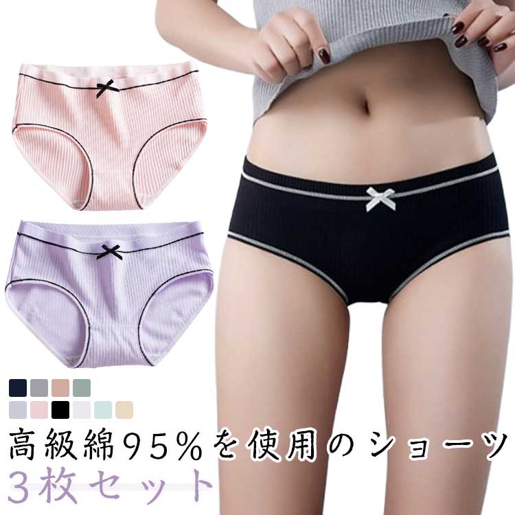 3枚セット インナー レディース ショーツ 綿 下着 リボン コットン ナイトウェア ランジェリー スタンダード レギュラーショーツインナー