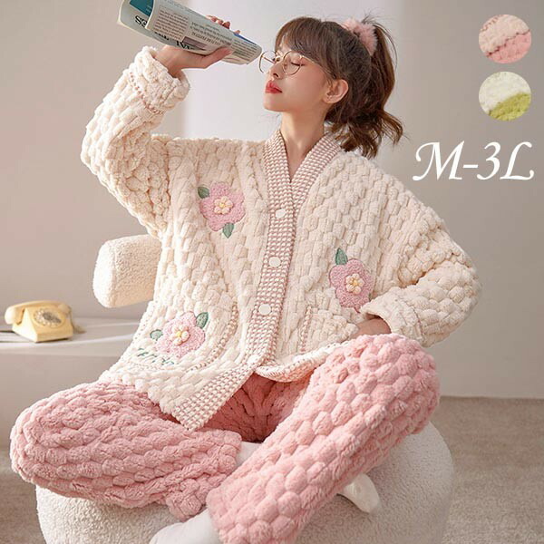 -3 もこもこパジャマ 上下セット 長袖 ルームウェア こもこ パジャマ 部屋着 前開き ふわふわ プレゼント
