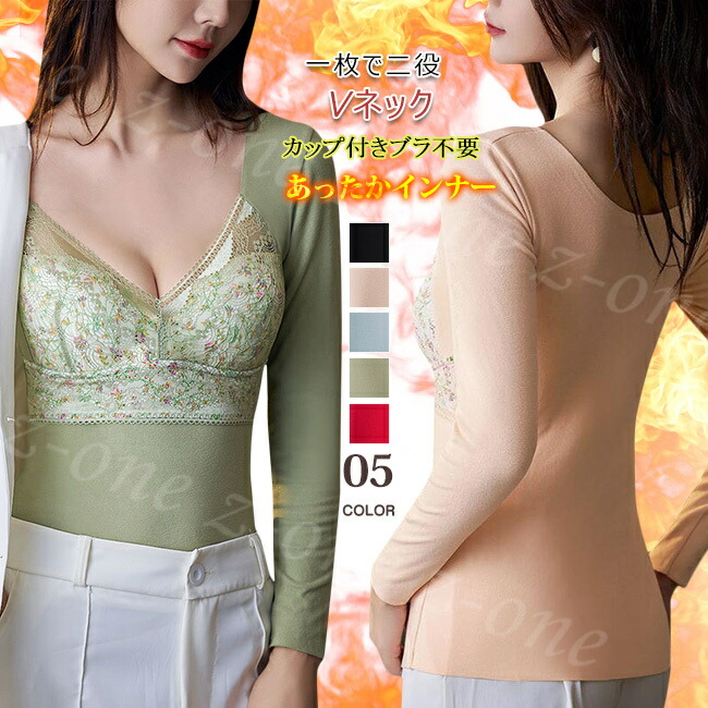 50%OFF インナー レディース カップ付き 冬新作 裏起毛 長袖 あったかインナー Vネック 深開き 起毛 両面起毛 カップ付きインナー ヒート 蓄熱 保温 ノンワイヤー 背中綺麗 カップ付きカ