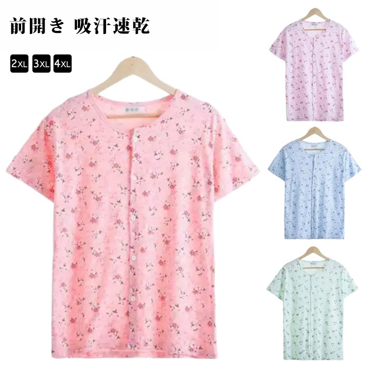 レディース 入院 Tシャツ 綿 前開き 介護肌着 着脱簡単 ゆったり 通気性抜群 おしゃれ シンプルデザイン 丸首インナー 介護用下着 肌着