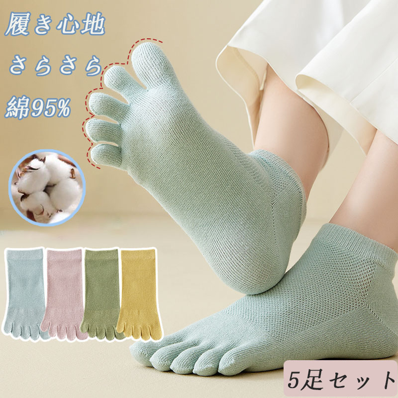 5本指ソックス 靴下 シンプル 足指 レディース 五本指ソックス 夏用 浅 短い 薄手 くつ下 くるぶし スポーツ フットカバー コットン メッシュ ソックス ブラック 白 黒 脱げない 5足セット