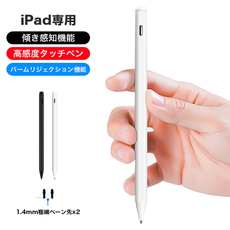 替え芯2本付き iPad タッチペン 極細 ペンシル スタイラスペン ペン先1.4mm極細 超高感度 超軽量 充電式 iPad Pro Air Mini 10.2 11 12.9 インチ 10.5 7