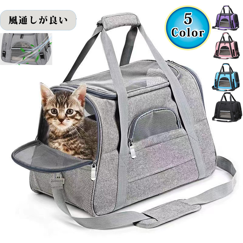 ペットキャリーバッグ 折りたたみ 2way 車載対応 ペットベッド可 メッシュ 犬猫用 ショルダー付き マット付属 おしゃれデザイン