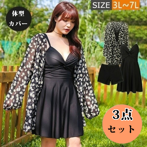 /// 旅行 露出控えめ 温泉 体型カバー 水着3点セット