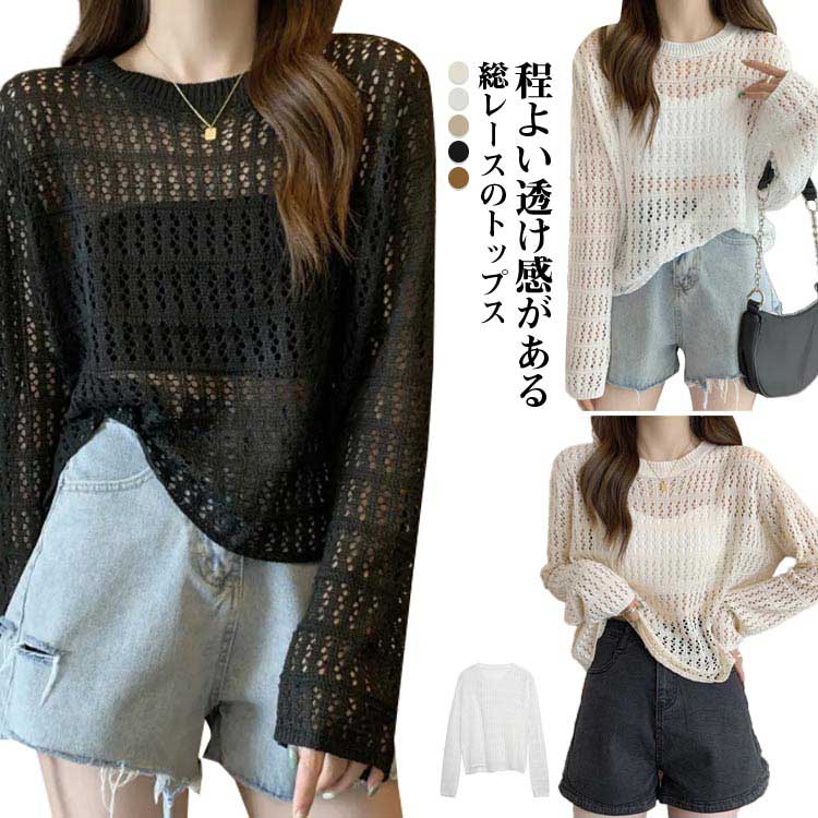 ニット ニットブラウス 重ね着 サマーニット レディース 透け感 キャミソール付き 2点セット トップス ニットプルオーバー 春夏秋 ニットトップス 大きいサイズ カジュア プルオーバー