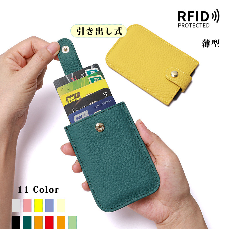 カードケース 本革 スリム 薄型 引き出し式 収納 スキミング 防止 おしゃれ かわいい 黒 無地 シンプル コンパクト カードホルダー 免許証 保険証 カード マイナンバーカード 普段使い