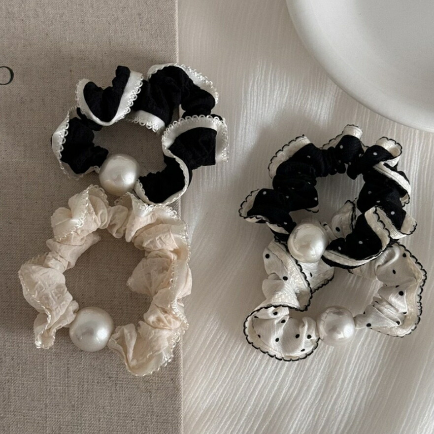 レースフリルシュシュ ヘアゴム スリムシュシュ レデイースヘアアクセサリー おしゃれ 大人可愛い シンプル