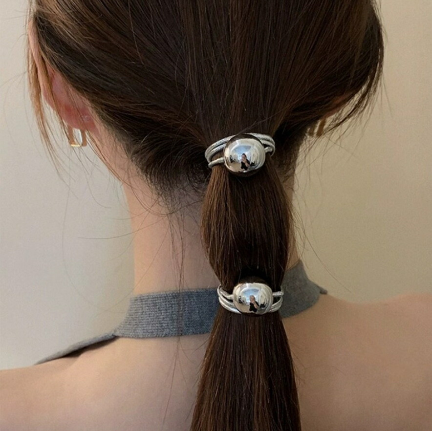 メタルボールヘアゴム 2点セット シルバー 大人っぽい おしゃれ ヘアアクセサリー エレガント カジュアル シンプル 上品