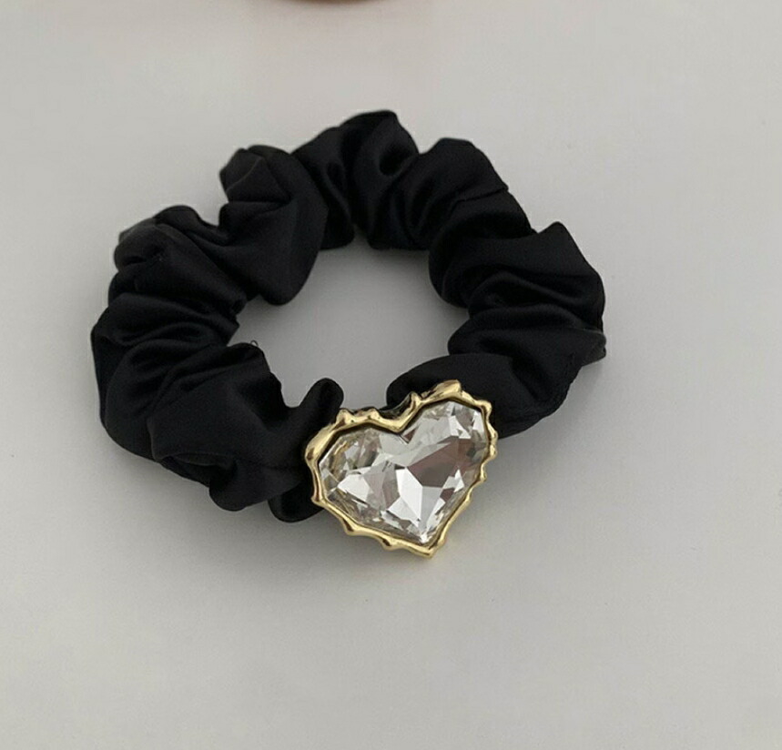 ビジューシュシュ ハート ヘアゴム シュシュ キラキラ ラインストーン おしゃれ 大人可愛い レディースアクセサリー シンプル