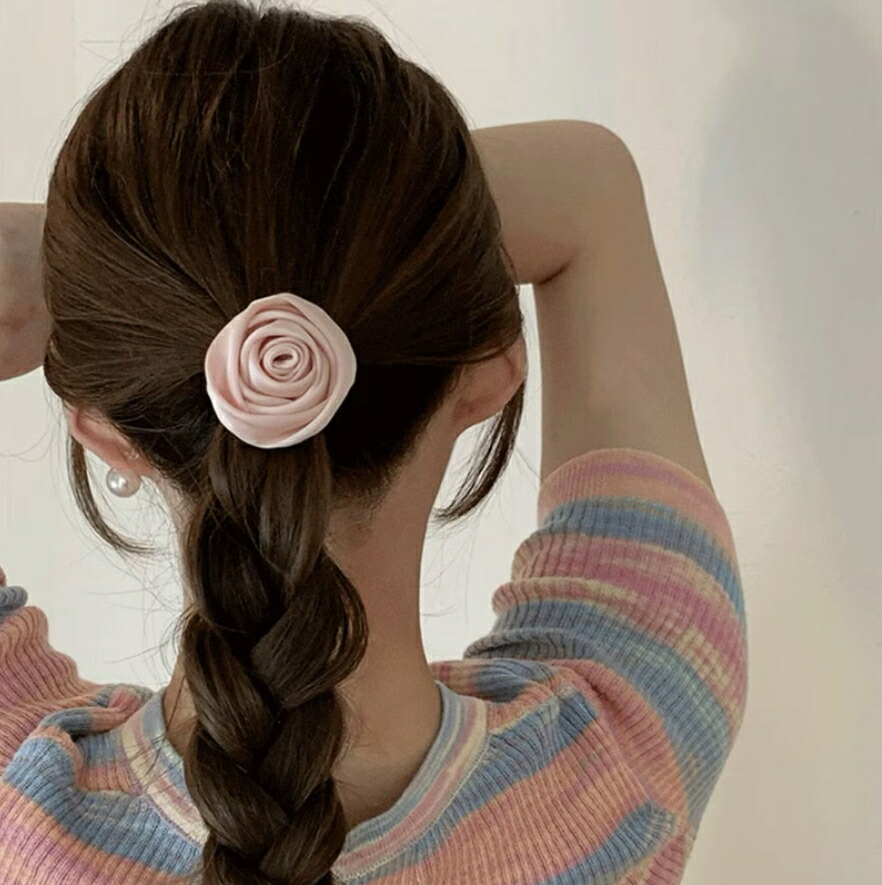 ローズモチーフリボンヘアゴム シュシュ レディースヘアアクセサリー 大人可愛い カジュアル おしゃれ