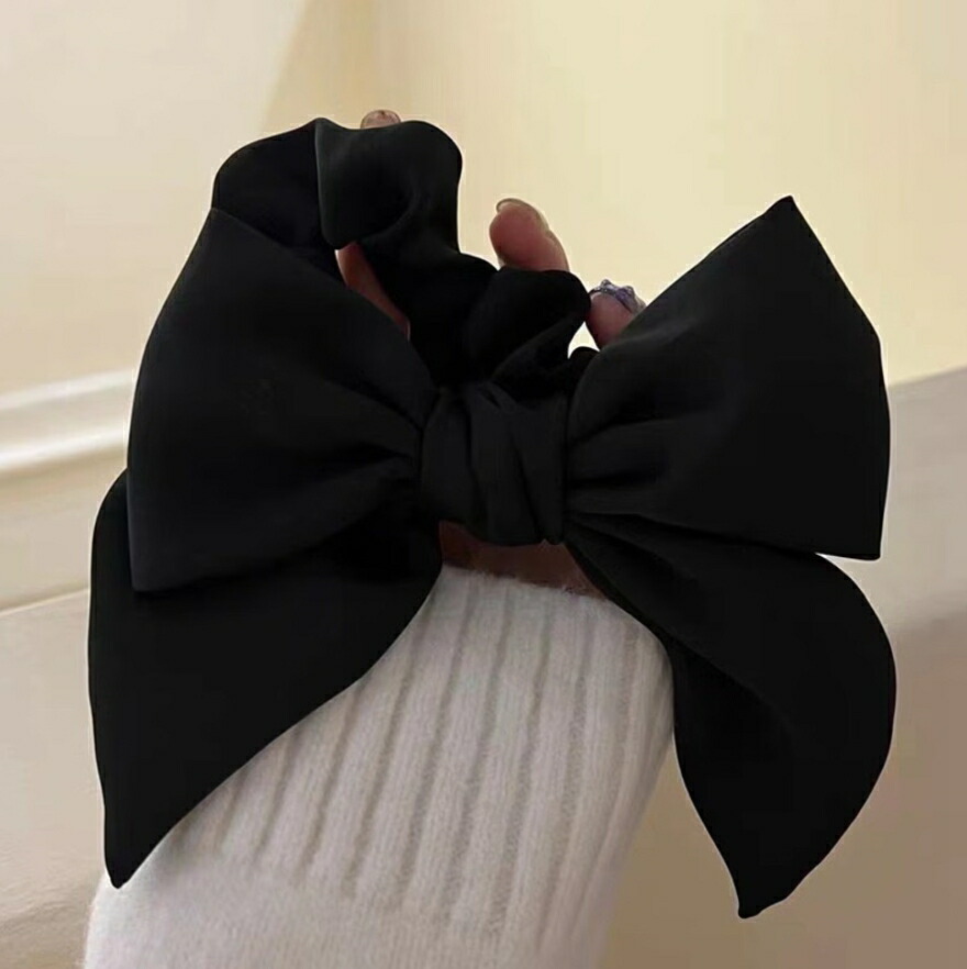 サテンリボンシュシュ ビッグシュシュ ヘアゴム シンプル おしゃれ ブラック レディースヘアアクセサリー 可愛い