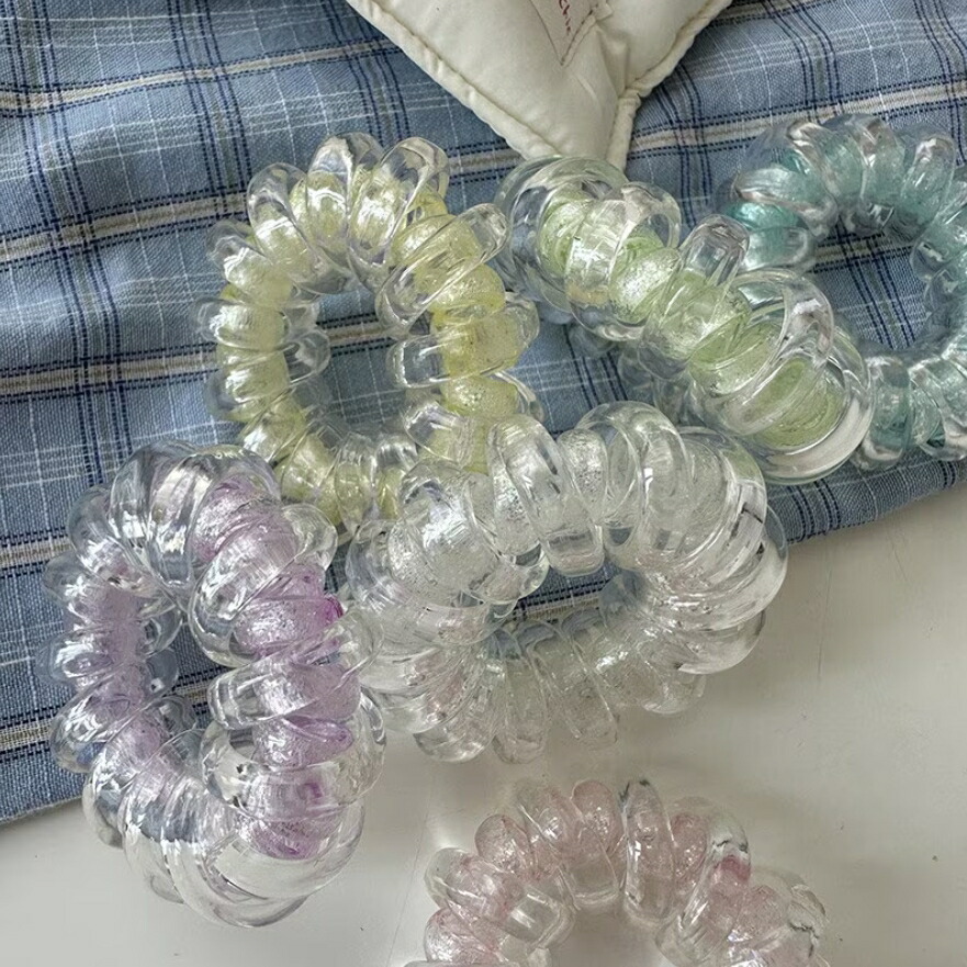 ヘアゴム コイル スパイラルリングゴム6点セット レディースヘアアクセサリー シンプル ホワイト クリア 夏 大人可愛い おしゃれ 春